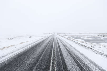 Snowy dangerous road in a solitary countryside landscape