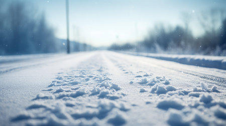 Sunny winter road covered with snow. Generative AI