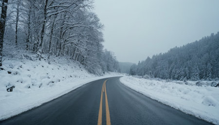 Navigating the Icy Highway in a Seasonal Journey Through a Snow-Kissed Landscape