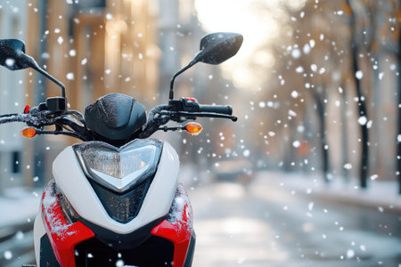 close up of motor cycle scooter covered with snow