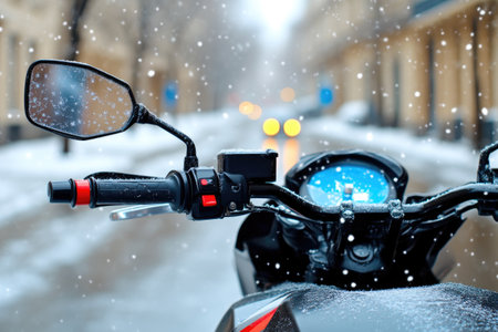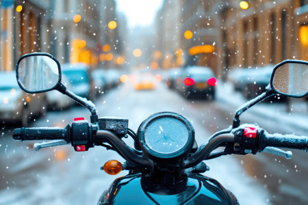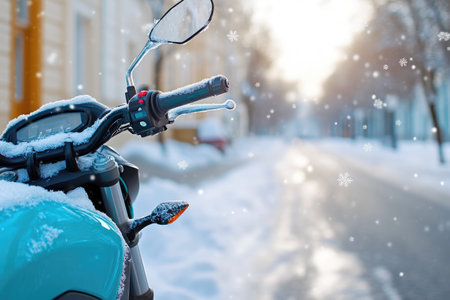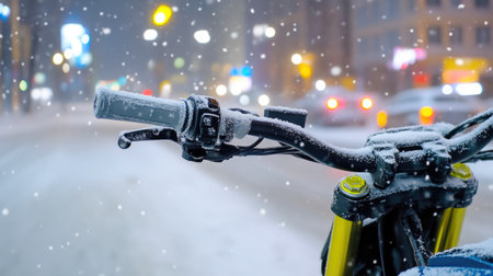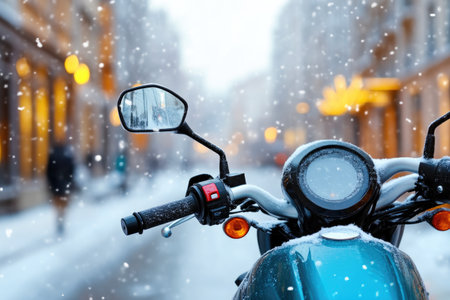 Snowflakes Adorning Motorcycle on Snowy Street