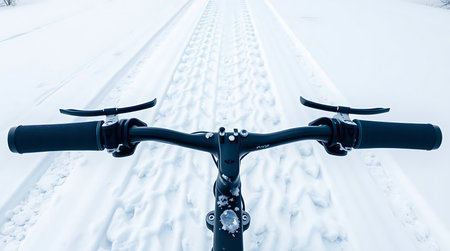 Bicycle in the snow, close-up of the handlebars