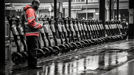 Scooter charging station attendant ensures fleet readiness