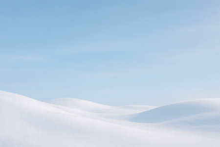 Minimal Winter Background with Snow Dunes, Calm Landscape with Pastel Blue Sky