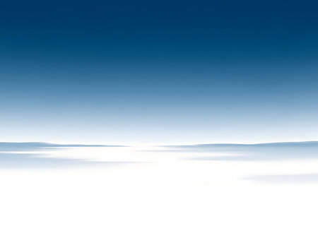 A minimalist winter landscape with a clear blue sky and a vast snowfield with subtle ripple patterns.