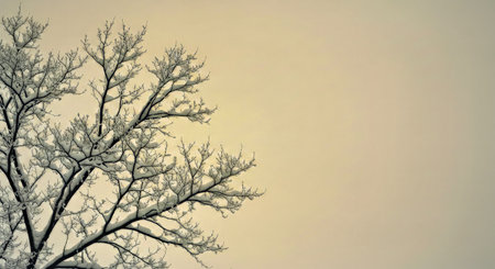 A serene winter landscape featuring snow-covered branches against a clear blue sky, perfect for seasonal or holiday designs