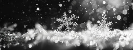 Glowing Snowflakes in Frosty Winter Wonderland - Sparkling Black and White Background