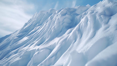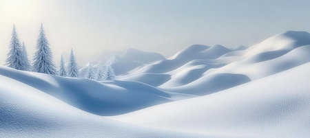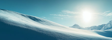 Photography captures a smooth snowy hill with soft curves under a bright winter sky, evoking a peaceful atmosphere and ideal for seasonal inspiration