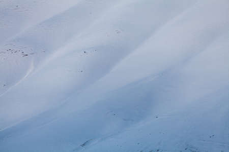 Texture of winter snow surface. Blue natural snow background with drawings made by the wind.