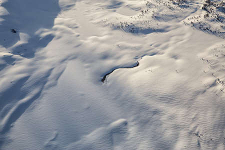 Beautiful winter background with snowy field. Natural winter texture. Wind on snowy surface