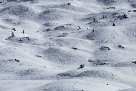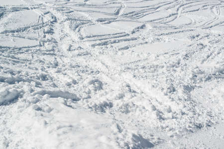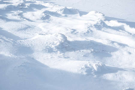 Snowy surface, the surface covered with a dense layer of snow in winter in the rays of the sun