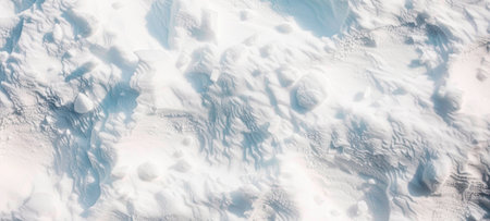 Close-up view of snow covering fractured ice, showcasing winter's serene beauty. Cold, peaceful scene.