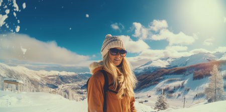 Happy woman posing for winter selfie on a ski resort. Sport and healthy lifestyle concept. AI Generated