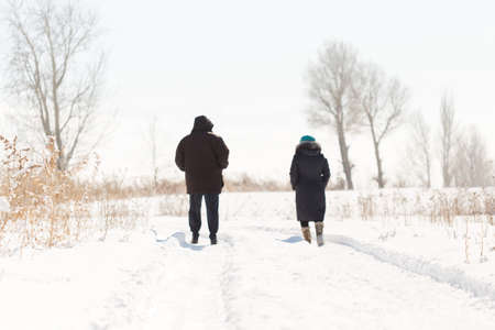 On a chilly winter day, two people stroll on a snowcovered path through tranquil woods, enjoying the breathtaking beauty and serenity of the landscape and the refreshing crispness of the air