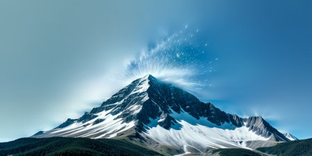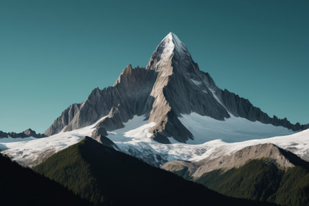 A stunning image of a snow-capped mountain peak stands against a clear blue sky, representing the tranquility and beauty of nature's untouched wilderness.