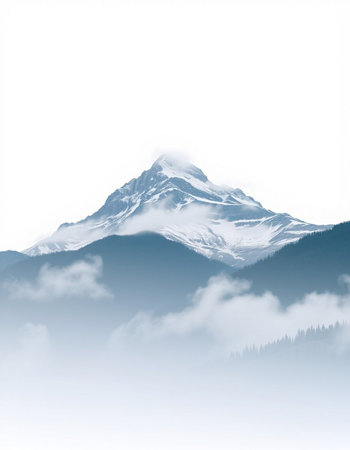 mountain peak in the clouds on a white background, nature series