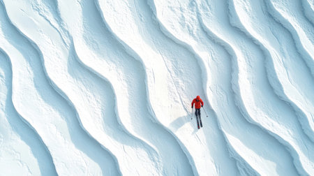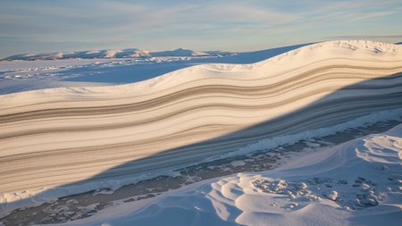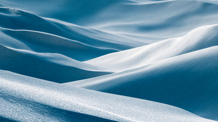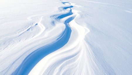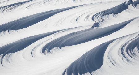 Abstract flowing lines and curves of wind-swept snow in bright light Clear details and vibrant colors enhance visual ...