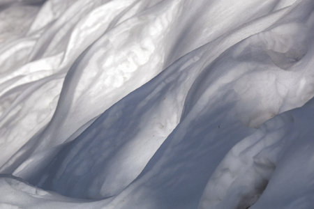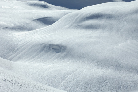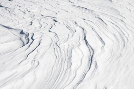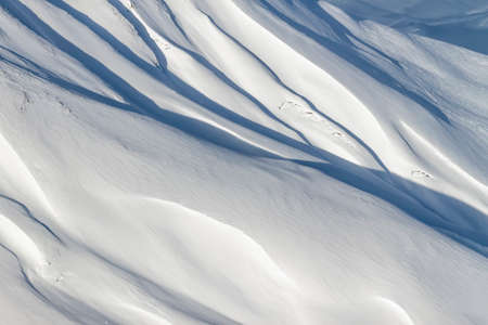 Soft snow texture. Wind sculpted patterns on snow surface. Winter background