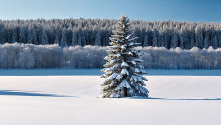 A beautiful illustration of a tranquil snowy landscape with clear skies and sunshine, created using generative AI.