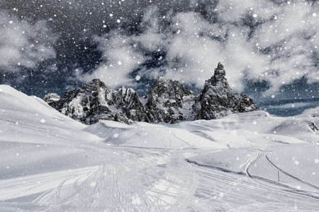 Beautiful winter snow mountains on stormy weather