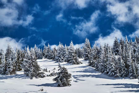 Beautiful Winter Landscape in Mountains. Majestic winter landscape. frosty pine trees.