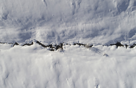 Snowy surface, the surface covered with a dense layer of snow in winter in the rays of the sun