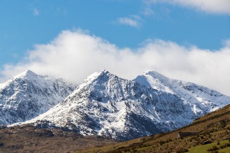 Beautiful Snowdonia Mountain with snow, Mynydd Drws-y-coed, Rhyd Ddu, Snowdonia, North Wales, Gwynedd, landscape