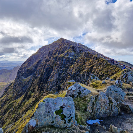 Majestic View of Mount Snowdon from the Ranger Path in Snowdonia National Park, Wales.