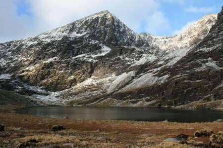Early morning Carnedd Llewelyn, from lake or Llyn Idwal. Snowdonia national Park, Gwynedd, Wales, UK. landscape.