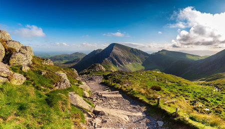 Beautiful landscape panorama of Snowdonia National Park in North Wales, UK