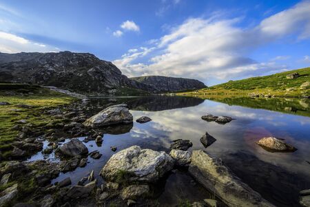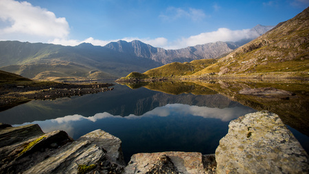 Mountain panorama with reflection of the highest Welsh mountain Snowden