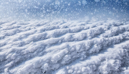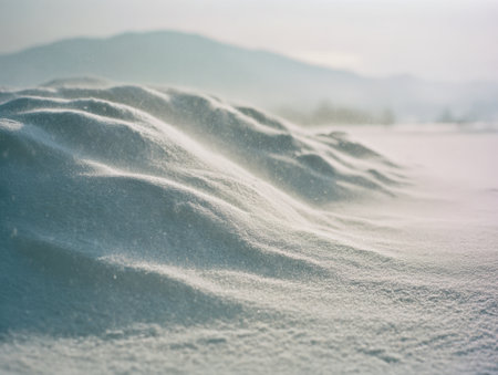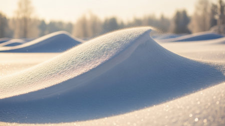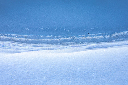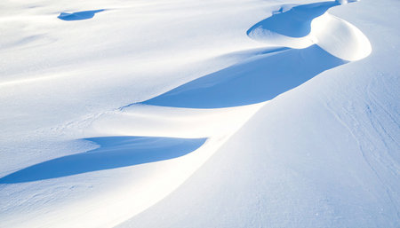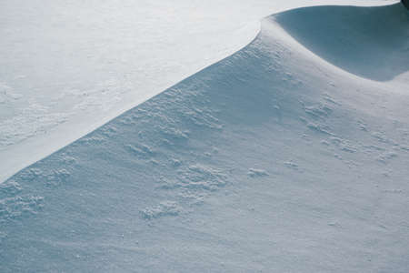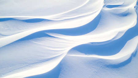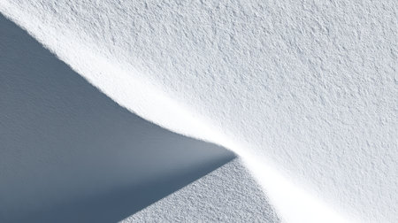 An elegant abstract close-up image showcasing the smooth texture of white snow with interplay of light and shadow, creating beautiful curves and serene visual lines.
