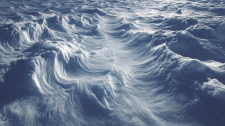 Abstract flowing lines and curves of wind-swept snow in bright light Clear details and vibrant colors enhance visual ...