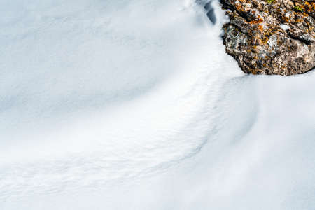 Fresh snow texture. Arctic, Lapland. Natural pattern. Global warming, winter sport and fishing, environmental conservation theme