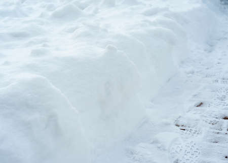 Snow cover snowdrift, snow background, snow texture with footprints, frozen climate, abnormal snow. frozen fresh snow