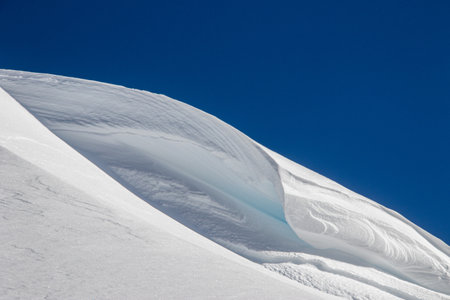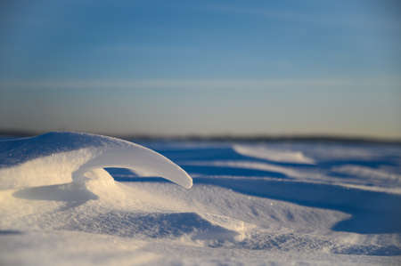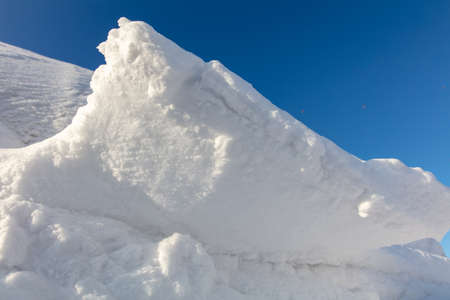 Interesting shapes of frozen snow drifts formed by the wind in mountains