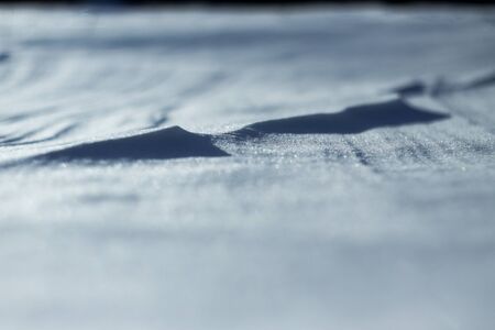 Abstract snow texture background. Close up snow dunes lines. Snowdrift, dune.