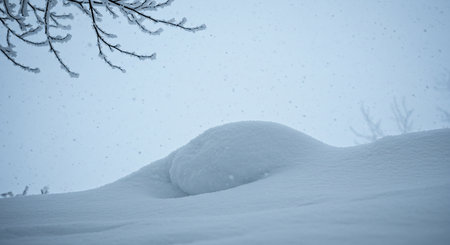 Tranquil snow covered landscape with gentle mounds and subtle shadows
