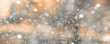 abstract winter background with bokeh defocused lights and snowfall