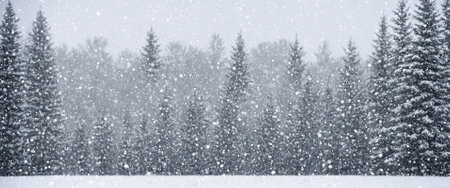 Majestic Winter Wonderland Featuring Snow-Covered Conifer Trees in a Serene Snowfall Landscape