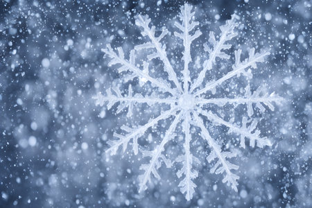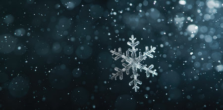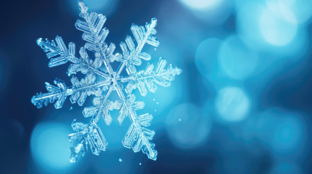 A stunning snowflake captures the essence of winter, glistening against a dreamy blue background. Perfect for holiday and seasonal themes.