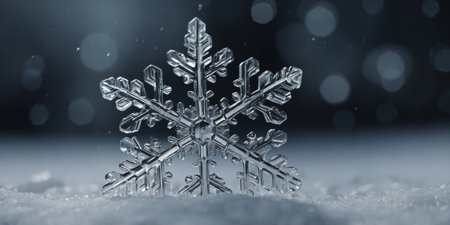 Intricate snowflake crystal close-up