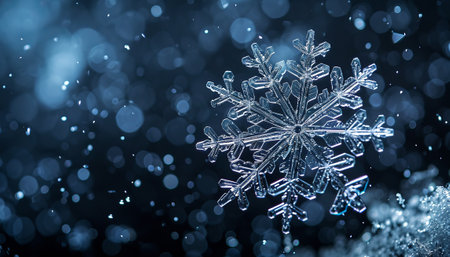Delight in the beauty of a snow crystal, showcasing its unique details in an ethereal winter setting.