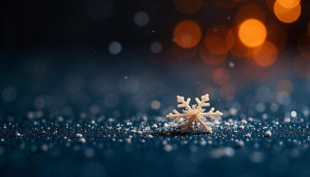 Stunning image featuring intricately designed snowflakes resting on a deep blue surface, accentuated by shimmering bokeh lights, ideal for winter-themed projects.