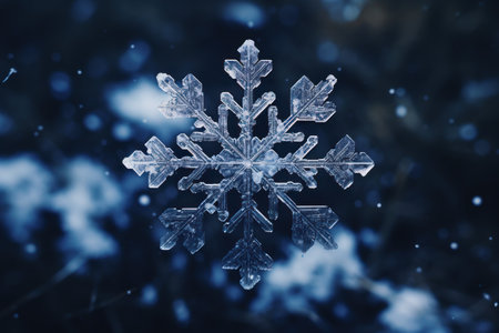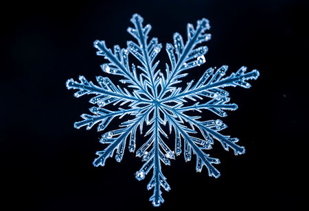 Intricate snowflake against a dark backdrop a close up of nature s unique crystallization