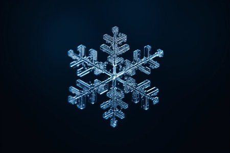 Stunning macro image of a snowflake showcasing intricate details and crystalline patterns, perfect for winter-themed designs and nature-related projects.
