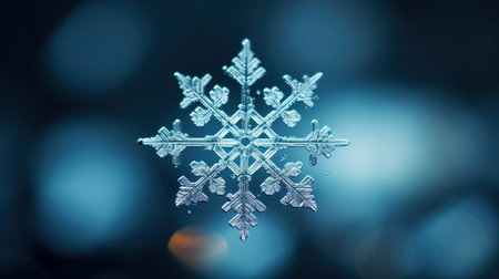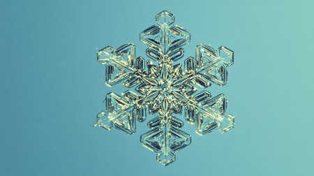 A close-up view of an intricate ice crystal snowflake, showcasing its unique design and delicate beauty against a serene winter background. Perfect for seasonal themes.
