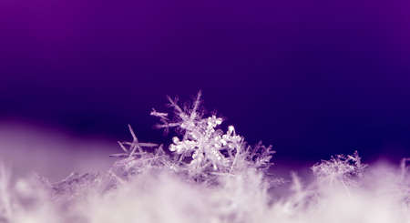 Macro photo of a beautiful snowflake close-up