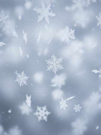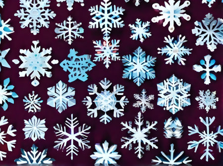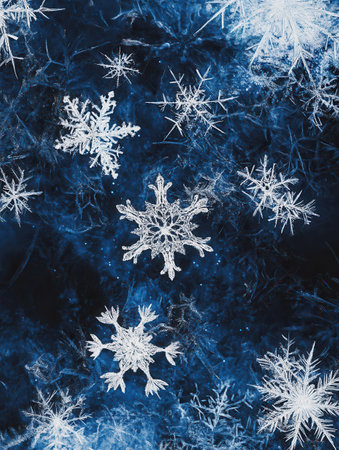 An exquisite array of unique snowflakes showcasing intricate designs and textures. Perfect for winter themes, nature photography, and artistic projects.