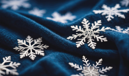 Close-Up of Intricate Snowflakes on a Cozy Blue Knitted Fabric, Capturing Winter s Elegant Beauty